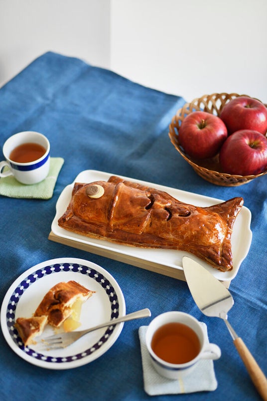 ユーハイムオリジナルのこどもの日の鯉のぼりをイメージした全長約27cmの迫力満点のアップルパイ。りんごがたっぷり入った巨大なアップルパイ。皆さんで切り分けてお召し上がりください。