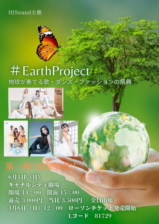 6月1日(日)キャナルシティ劇場(福岡)#EarthProjectと題して、Live決定!!開場14:00 開演15:00他にもアーティスト、モデル、ダンサーとも共演する。Entertainmentから地球の事を考えようとする取り組み。チケットのお買い求めは、ローソンLコード【81729】前売り3,000円当日3,500円全自由席
