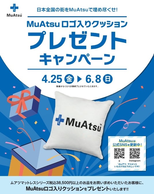 【オリジナルMuAtsuロゴ入りクッションプレゼントキャンペーン概要】