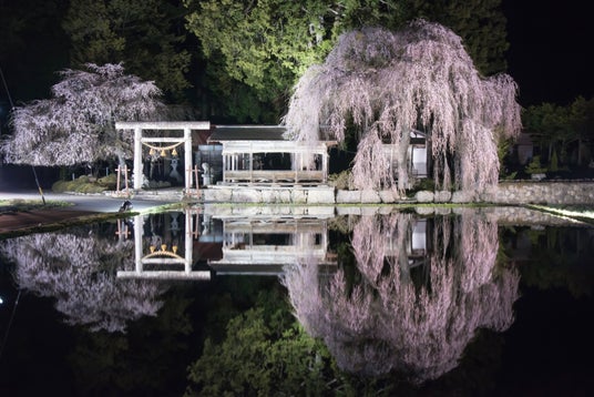 岐阜県高山市朝日町では、4月21日より枝垂れ桜のライトアップが始まります。