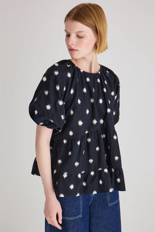 25SSコレクションに欠かせないイカット刺繍を施したアイテムが初登場!インドの職人による刺繍アイテムは毎回楽しみにされているファンもいるほど人気です。イカット刺繍はまるでドットのようですが、近くでよくみると縦横ギザギザと立体的に刺繍がされています。マリサ・ベレンソンが着ていそうな70~80年代風のどこかいびつで愛嬌のあるでこぼこしたドットを表現しています。デコルテが美しく開いたドレスLORIS、シグネチャードレスSOLIMAN、パフスリーブブラウスBOWの3型がラインナップ。
