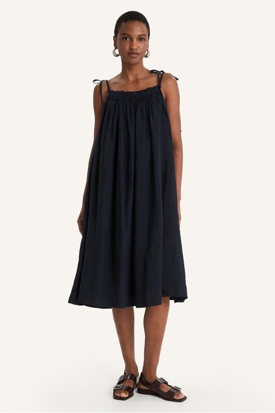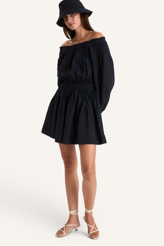 サイドにあしらわれたギャザーと長めのフレアスリーブが、涼やかでモダンな雰囲気のMYSTYCA BLOUSE。軽くて流れるような素材感は、肌に触れるたびエアリーな感触をもたらします。夏のリゾート地で水着の上に羽織るために作られたVITTORIA Dressは、ハンドスモッキングが部分的に施されたオフショルダーのミニドレスです。LAURES Dressは一枚でも、Tシャツとレイヤードしても素敵な夏にぴったりのドレス。24SSに初登場したマーレットのリネンシリーズは、とても話題になり完売するほど。天然素材の着心地の良さを多くの人に体感してもらいたいという想いを込めて作られたアイテムです。アイボリーとネイビーのカラーに加え、日本別注カラーのブラックも限定販売いたします。
