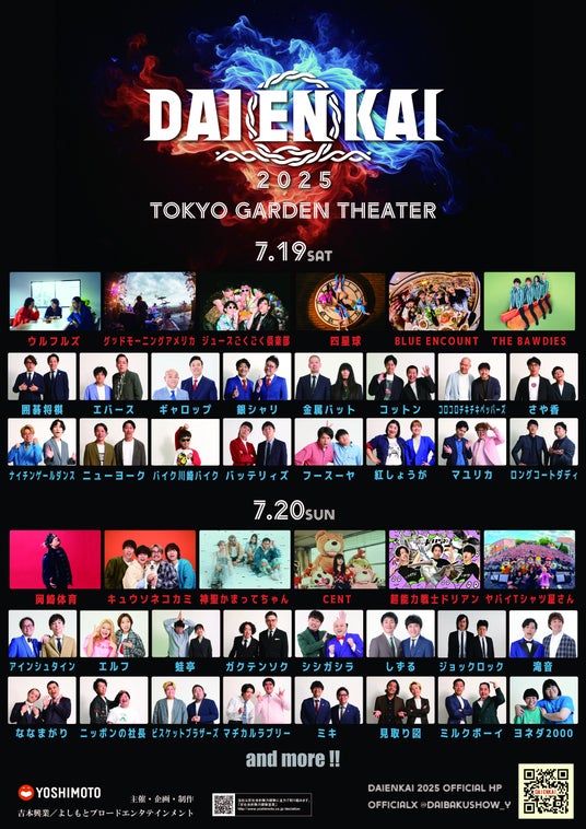 2025年7月19日(土)、20日(日)に東京ガーデンシアターにて開催する『DAIENKAI 2025』の追加ラインナップ&日割りが決定しました。