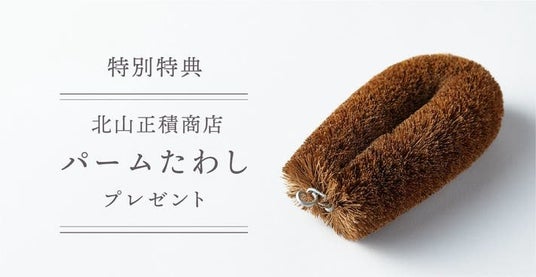 【特別特典】パームたわしプレゼント今回のプロジェクトでSABILESS.鉄フライパンを応援購入いただいた方に、北山正積商店さんのパームたわしをプレゼント。