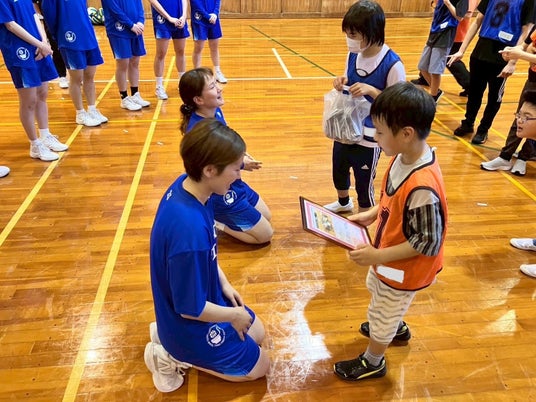 選手の皆さんが大いに盛り上げてくださり、子どもたちは1年ぶりとなるバスケットボールを楽しみ、また選手の皆さんには子どもたちの成長を感じてもらいながら、笑顔たっぷりの教室となりました。