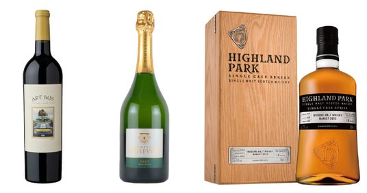 左) ●[ラ・シレーナ] 2012アートバス レッド (赤・750ml) 25,300円 中) ●[レ・カーヴ・ド・タイユヴァン東京] コレクション・タイユヴァン シャンパーニュ・ブリュット(泡白・750ml) 13,200円 右) ●[ハイランドパーク] 18年 シングルカスク For MMWM2023#4093 (700ml) 59,400円