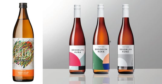 左) ●[若潮酒造] GLOW EP08-The sun also rises on you- (芋焼酎25度・900ml) 1,760円 〈60本限り〉 右) ●[ブルックリンクラ]左から オクシデンタル(リキュール・750ml)、グランドプレーリー(清酒・750ml) 、キャッツキル(清酒・750ml) 各5,258円