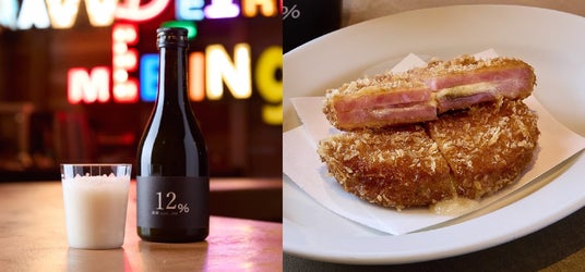 左) ●nondoどぶろく12% (1杯) 1,650円 右) ●ブルーチーズのハムカツ 1,100円