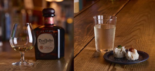 左) ●ドンフリオ アネホ(15ml) 1,100円 右) ●氷無しテキーラハイボール(235ml)&シュウマイ2個 2,200円