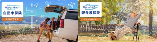 ANAの保険でマイルが貯まる商品の発売は今回が初となり、自動車保険は年払保険料50円につき1マイルを、親介護保険は年間保険料100円につき1マイルを積算いたします。