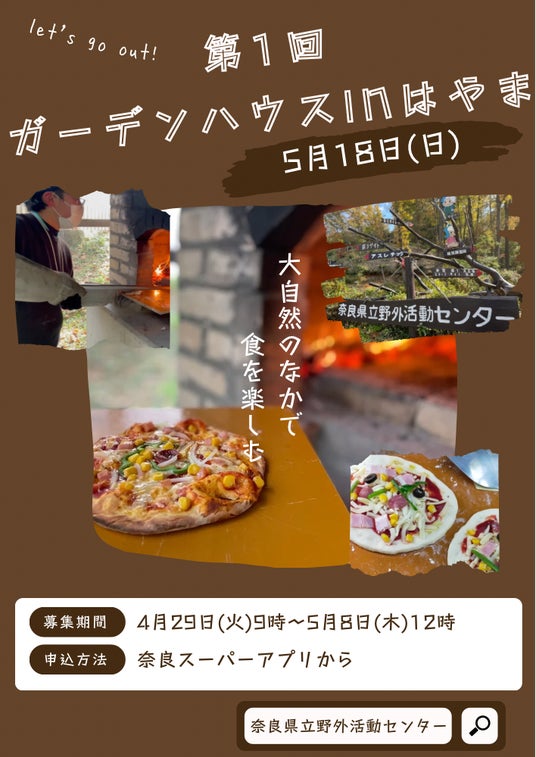 窯焼きピザ作り体験を開催いたします。地域の食材を活かし、自然を満喫できるイベント ~第1回ガーデンハウスinはやま~