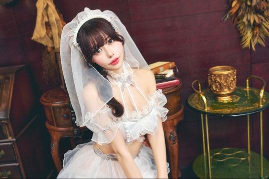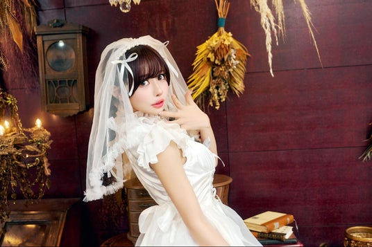 猫耳付きのベールが特徴的な、ランジェリータイプのコスチューム。セクシーな花嫁姿を演出したい方におすすめです。