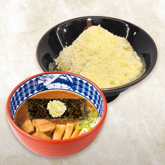 たっぷりのチーズを、これでもか! と絡めた麺は、オリーブオイルと黒胡椒の香りが引き立つイタリアンな味わい。麺が美味しい三田製麺所だからこそ、麺とチーズだけで食べても美味しい、濃厚な味付けにしました。たっぷりチーズがクセになる一杯は、数量および店舗を限定しての販売につき、お早めにご堪能ください。