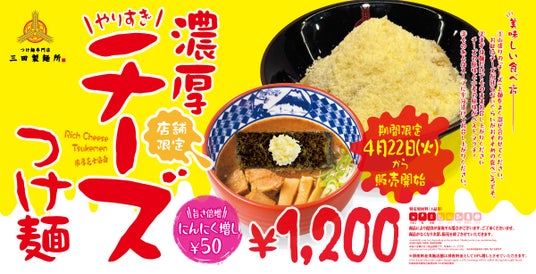 【三田製麺所の新商品】にんにくの効いたチーズたっぷり『濃厚\やりすぎ/チーズつけ麺』を限定販売!