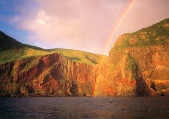 約600万年前の火山活動により形成された隠岐諸島は、島根半島の北方、40~80キロの日本海に浮かぶ4つの有人島と、約180の小島からなる諸島です。国賀海岸や白島海岸などに代表される雄大で美しい自然景観を有し、1年を通じて積極的に観光促進に取り組んでいます。