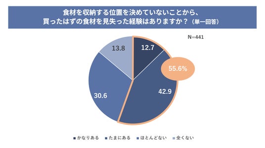 さらに位置を決めていないことから買ったはずの食材を見失った経験がある人は半数以上の55.6%に》