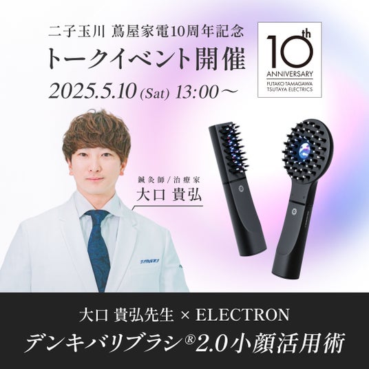 オープン10周年企画の一環として、デンキバリブラシ(R)2.0の効果的な活用法を解説するトークイベントを2025年5月10日(土)に開催します。“神の手”と称される鍼灸師/治療家の大口貴弘先生を講師に迎え、デンキバリブラシ(R)2.0を使った「キメ打ち!メソッド」を解説いただくトークイベントです。