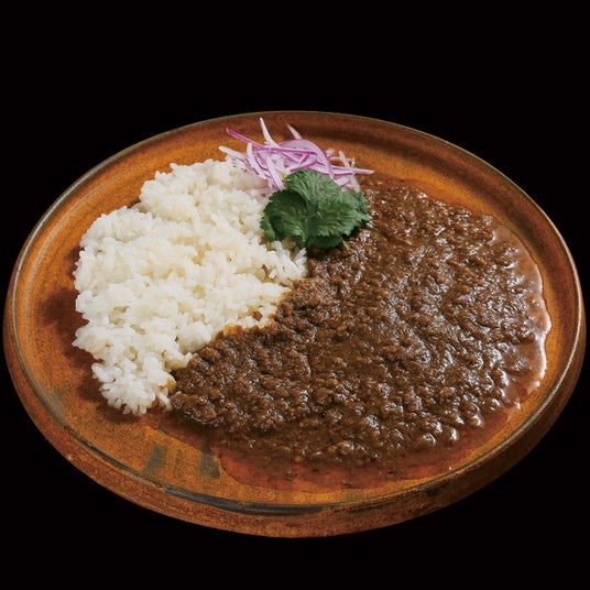 『料理人兼ハンター』異⾊のシェフが放つツキノワグマのキーマカレー。極上な⽢味を放つ脂と濃厚な肉の旨味、シェフ独自のスパイス調合で香り高い極上のキーマカレーへと仕上がっている。そこにはクセや臭みはなく、ジビエの美味しさだけが抽出されており、スパイスカレー本来の美味しさが口いっぱいに広がる。