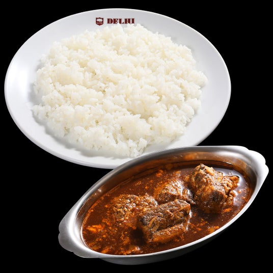程良い酸味でまろやかな⿊酢のビンダルーカレー。酸味とスパイスの⾟さが絶妙に絡み合う、インド西海岸ゴア地方の伝統カレー「ポークビンダルー」。⿊酢を使用しており、まろやかな味わいで、ベースに使用しているトマトと香⾟料の風味が重なり、⿐を抜ける爽やかな酸味とピリリとした⾟さが堪らない。