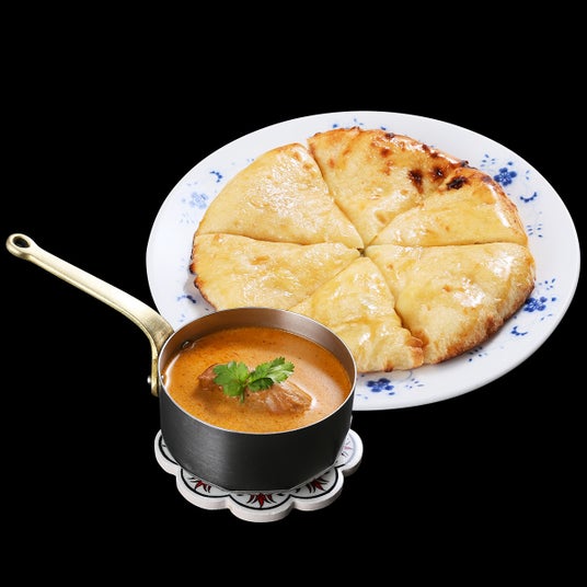 スパイスやバターの優しい香りが食欲をそそる、本格バターチキンカレー。⾟さ控えめでクリーミーな本格バターチキンカレーと、たっぷりのチーズをもちもちのナンで包んだチーズナン。タンドール釜で焼き上げられたタンドリーチキンと、シタールではお馴染みの野生⿊蜂蜜も付属したフルセットをご自宅でご堪能あれ。