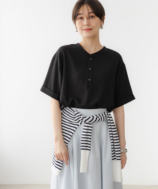 程よい首元の開きがON・OFF使いやすく、二の腕までカバーする長めの袖丈も大人女性に嬉しいポイントです。