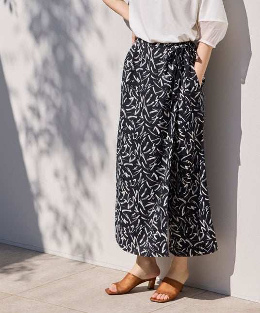 スカートとパンツの良いところを取り入れた、ラップデザインシルエット。前から見るとスッキリ見えするナロースカートで、履き心地はパンツ。シンプルな夏のTシャツスタイルを格上してくれる、この夏クローゼットに追加したい1点です。