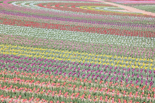 冬を越え、65,000平方メートル もの広大な畑一面に75万球のチューリップが咲き誇ります。毎年異なるデザインで植栽するエリアを変えているので、今年の花畑は今年だけの景色です。何度訪れても楽しめる花絶景をぜひご覧ください。