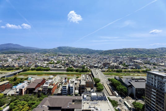 トップラウンジオリゾンテからの鴨川と東山連峰の景観