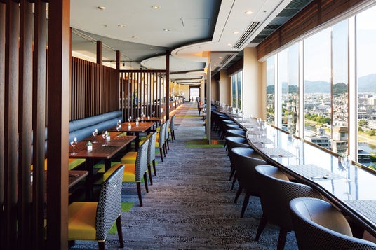 京都市の中心部に佇む、1888年創業の伝統あるホテル。2025年で創業137周年。京の風情とヨーロピアンテイストが調和した落ち着いた趣の館内には国内外の賓客を迎えてきた歴史が刻まれています。高さ約60メートルの最上階レストランフロアからの眺めは美しく、東山三十六峰や鴨川、古都の街並みを一望いただけます。