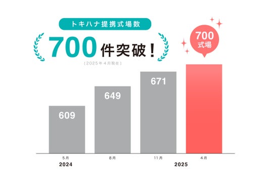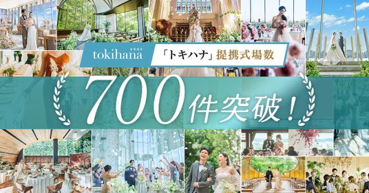 LINEでできる式場探し『トキハナ(https://tokihana.net/)』を運営する株式会社トキハナ(本社:東京都港区、代表取締役社長:安藤 正樹、以下 「トキハナ」)は、提携式場数700件を突破しました。業界を熟知した元ウエディングプランナーによって厳選した、顧客満足度の高い式場のみと提携しています。トキハナの提携式場を利用いただいたお客様に感謝するとともに、提携式場数700件突破記念として『花嫁美容体験キャンペーン』を開催します。
