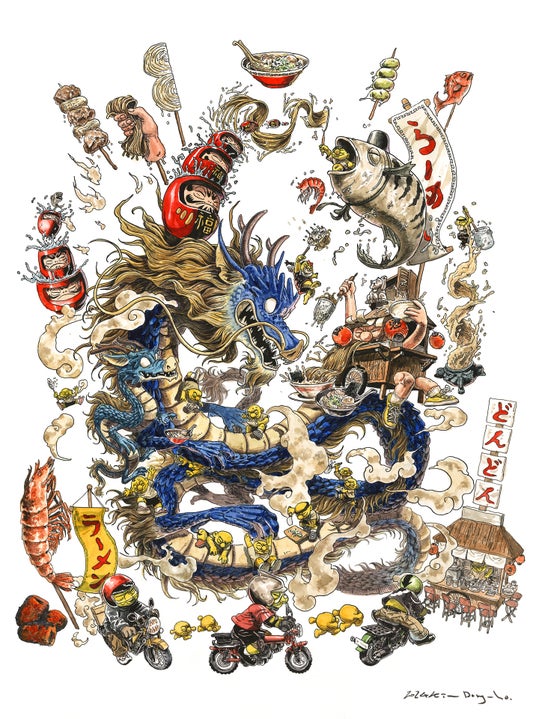ペンと筆を使い、旅や日常の中で出会った風景に空想のキャラクターや物語を加えて絵を描く。現実に非現実的な要素を織り交ぜ、時には世界を風刺し、時には人間の痛みや温かさを表現する。