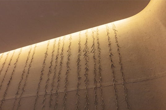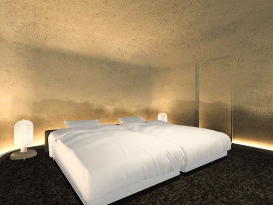2階には、波打つ天井やヘッドボード照明によって光の波を表現した寝室と、左官の技術を用いて壁を仕上げた寝室の2つのベッドルームを備えています。3階には蚊帳をイメージした寝室を計画しており、「hitotose」シリーズのテーマである四季や日本文化を各部屋に反映しました。