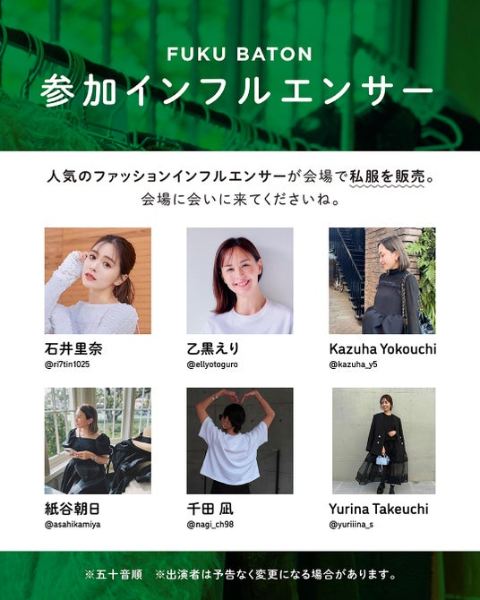 - 内容:複数の人気インスタグラマー、モデル、クリエイターの私服を現地にて販売