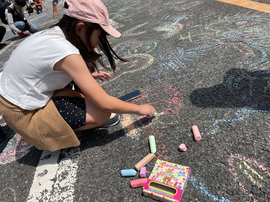 参加者からは「今の時代、こんなことめったにできないですよね」「子どもの頃は蝋石でよく描いたわ」「道路にお絵かきするの初めてです」など、たくさんの声をいただきました。