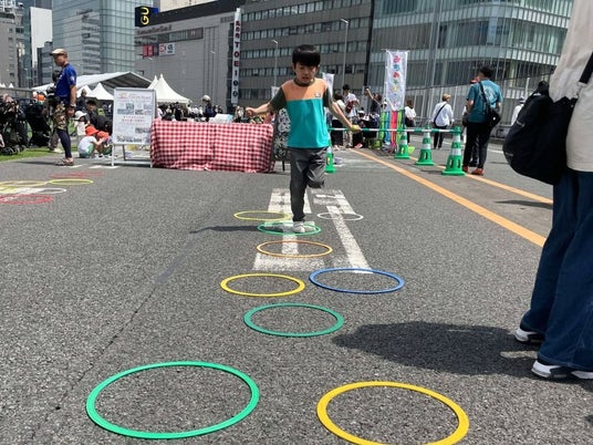 また、コーナー入口に設置した「けんけんぱ」も大人気。子どもだけでなく、大人たちも思わず跳んでしまう、ほほえましい光景が広がっていました。