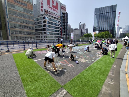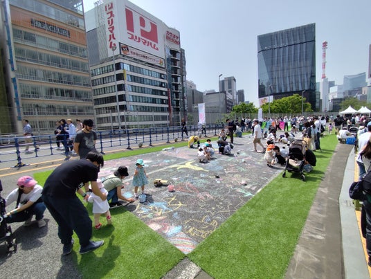 2025年4月19日(金)、廃止となった東京高速道路(新橋~西銀座)の区間を会場に開催された「Roof Park Fes & Walk」にて、TOKYO PLAYはNPO法人まなびとくらしの協力のもと、「路上お絵かきコーナー」を担当しました。