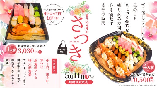 株式会社活美登利(本社:東京都品川区、代表取締役社長:土屋秀仁)が運営する「回し寿司活/寿司活」は、運営店舗全店で4月21日(月)より期間限定の盛り合わせ「さつき」を販売開始いたします。