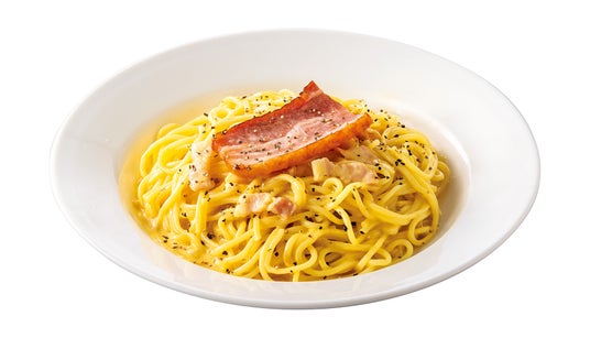 今回はパスタシリーズより「ヤリイカと明太子の和風パスタ」、「厚切りベーコンとパンチェッタの濃厚カルボナーラ」が新たに登場。「ヤリイカと明太子の和風パスタ」は、ヤリイカと明太子の旨みが際立つ、王道和風パスタです。大葉の爽やかな香りと刻みのりのアクセントが、明太子の濃厚な味わいを引き立たせます。「厚切りベーコンとパンチェッタの濃厚カルボナーラ」は、塩漬けした豚バラ肉である“パンチェッタ”がポイントの本格カルボナーラです。豚バラ肉本来のおいしさがぎゅっと凝縮されたパンチェッタや食べ応え抜群の厚切りベーコンの旨みを感じる、濃厚なカルボナーラをお楽しみいただけます。