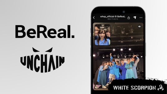 「世の中を“神ゲー”にして動かす」をミッションに、ゲーミフィケーション・マーケティングの企画運用を行う株式会社UNCHAIN(本社:東京都渋谷区、代表取締役:ウィン・レイ、以下UNCHAIN)は、Z世代注目のアプリ「BeReal.」にて、秋元康氏プロデュースの女性アイドルグループ「WHITE SCORPION」の公式アカウントの開設支援を行いました。本取り組みは、日本において女性アイドルグループの全メンバーが揃ってBeReal公式アカウントを開設する初の事例であり、BeReal Japanとのパートナーシップの元、弊社にてアカウント開設から今後の運用サポートまで、クリエイターの魅力を最大限に表現していただくサポートを行う公式アカウント開設支援プロジェクトとなります。