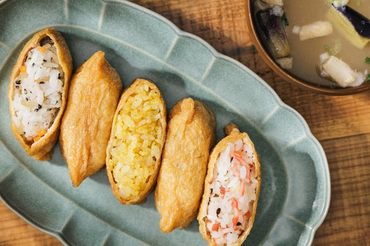 いなり寿司は、黒ゴマ、わさび、五目、梅ちりめん、カレーの5種1セット。