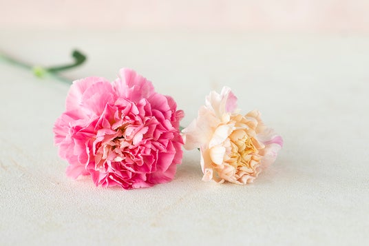 カーネーションは、前述のアレンジ「ルミナ」同様、1輪に複数の色が入り交じる「ミナミ」シリーズから、ピンク系の花をミックスしてアレンジします。