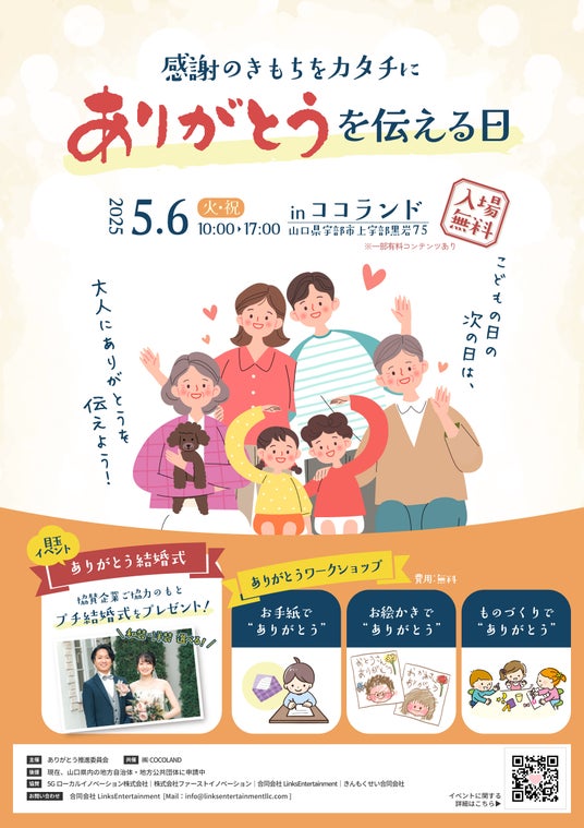 株式会社ファーストイノベーション(本社:東京都中央区、代表取締役社長:木ノ根雄志、以下ファーストイノベーション)は、2025年5月6日(火・祝)に山口県宇部市にて開催される地域イベント「ありがとうを伝える日」に、WEB支援を中心とした協力企業として参画いたします。