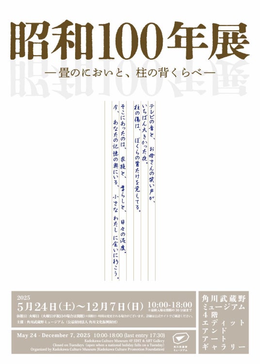 公益財団法人 角川文化振興財団(所在地:東京都千代田区、理事長:川上量生、以下 角川文化振興財団)は、 「ところざわサクラタウン」内、「角川武蔵野ミュージアム」(館長:池上彰)の4Fエディット アンド アートギャラリーにて、2025年5月24日(土)~12月7日(日)の期間、「昭和100年展」を開催いたします。