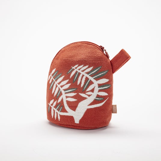 コロンとした形のポーチで、開いたまま立てて置けます。お財布や携帯、鍵、ハンカチなどさっと取り出したいものを入れるのにおすすめです。