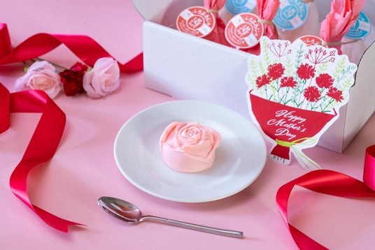 母の日向けのギフト商品として、ピンクのバラの形のチーズケーキが新登場。チーズケーキの中には、埼玉県吉見町のいちごを使用したソースが入っています。