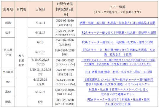 現在募集中の、FDAチャーター便を利用した旅行ツアーのご案内です。