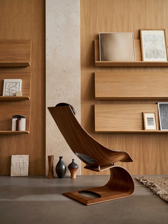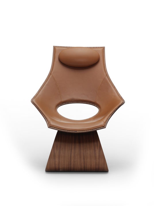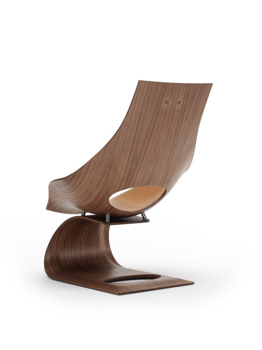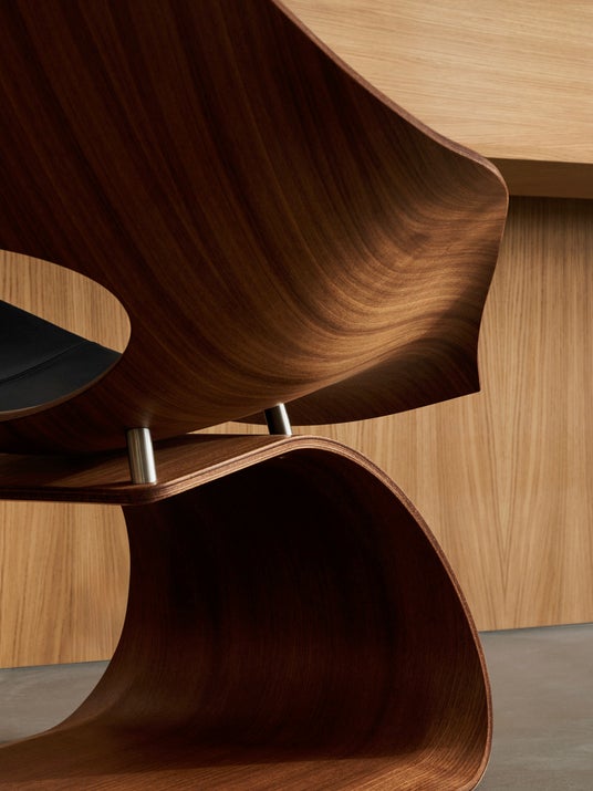 安藤忠雄氏がはじめてデザインを手がけた家具として注目を集めたこの椅子は、3D成型された一枚のプライウッドシートから作られ、安藤氏ならではの精緻な曲線が特徴です。彫刻的でミニマルなフォルムを追求した、ハンス J. ウェグナーへのオマージュと自身のスタイルが融合したデザインとなっています。どの角度から見ても美しいフォルムを構築し、アートとデザインの境界に位置する独特の存在感を誇示しています。