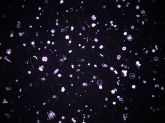 ※放散虫とは、オパールや硫酸ストロンチウムの骨格を持つ原生生物です。有孔虫とは、炭酸カルシウムの殻を持つ原生生物です。どちらもとても小さな生き物ですが、世界中の海にたくさんいて、芸術的な美しい姿かたちをしている種類が多く知られています。