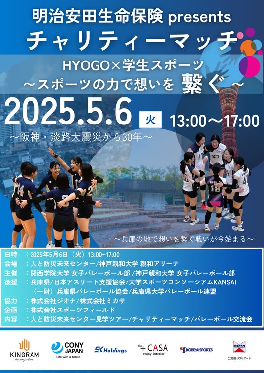 株式会社スポーツフィールド(本社:東京都新宿区 代表取締役:篠崎克志)は、チャリティーマッチ「HYOGO×学生スポーツ ~スポーツの力で想いを繋ぐ~ 」を企画・開催することになりました。