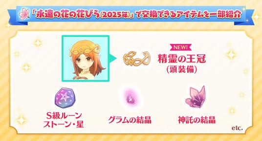 「永遠の花の花びら(2025年)」を集めて「精霊の王冠」などと交換!